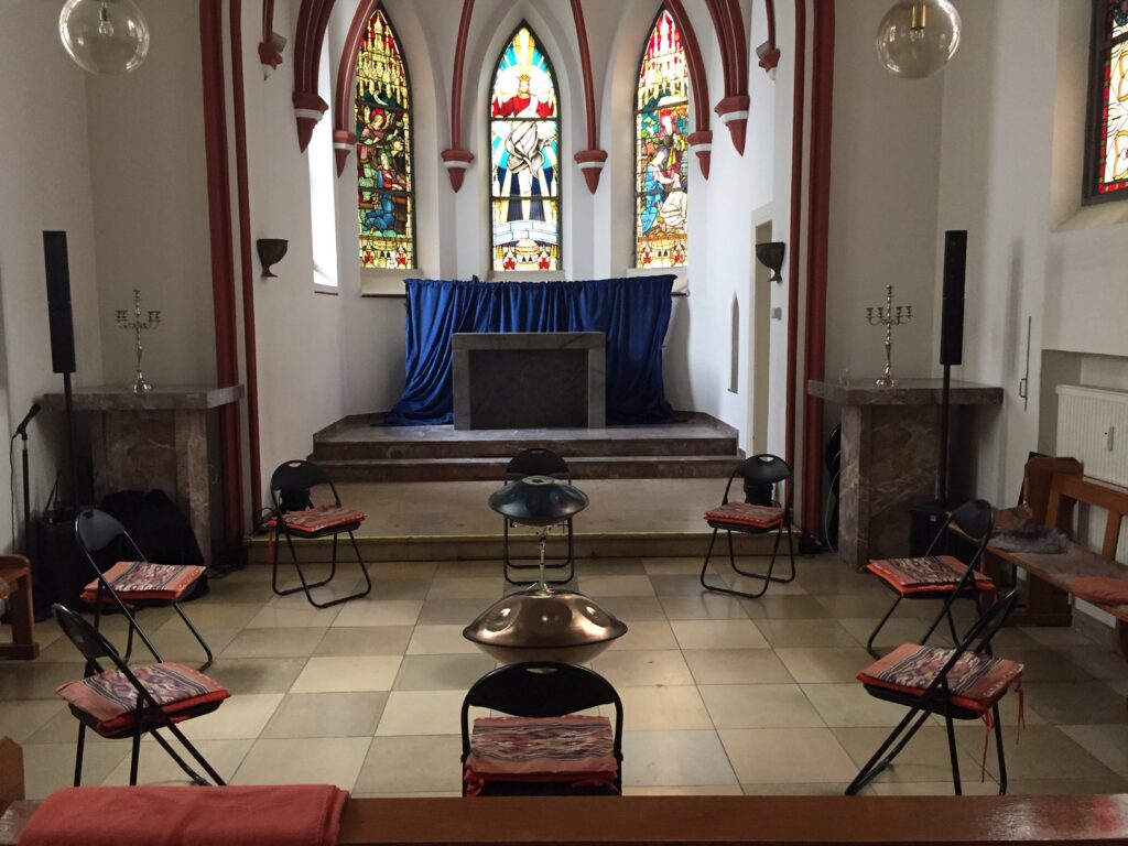 Einmal im Monat findet eine D-celtic-minor Handpan-Session in der Monta Kapelle in Wiesbaden statt.