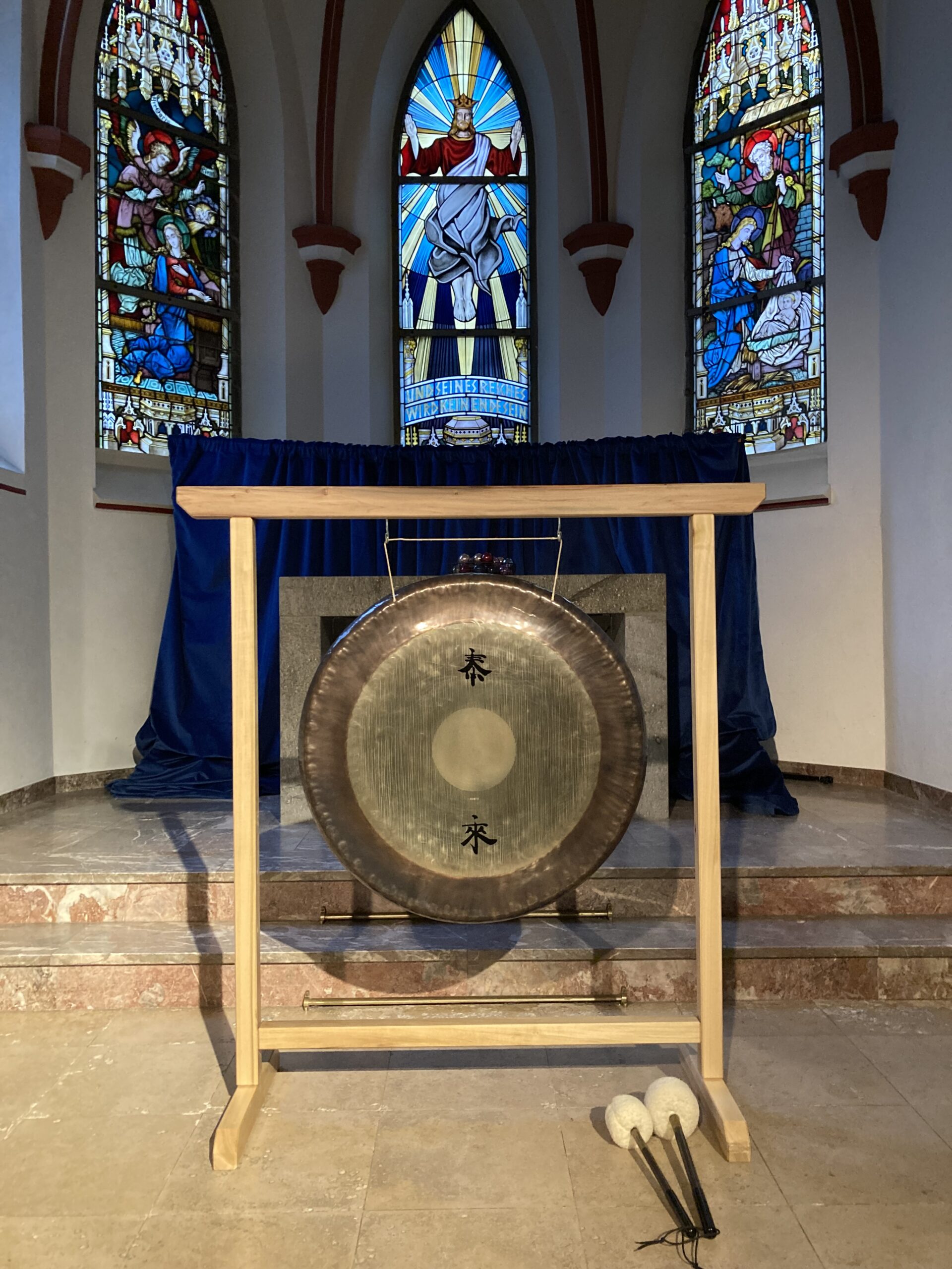 Instrumente wie der Gong, Handpan, Harfe, Sitar, Flöte, Gitarre, Monochord u. a. laden zum Zuhören, Stillwerden und Zurücklehnen ein.